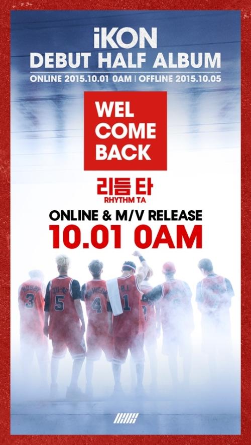 포스터에는 각자의 이름과 번호가 새겨진 붉은색 농구저지를 입은 아이콘 7명 멤버의 뒷모습이 담겼다. 또 이번 하프앨범의 더블 타이틀곡 중 하나인 '리듬 타(RHYTHM TA)'의 제목, 온라인 음원과 뮤직비디오가 10월 1일 0시에 공개된다는 정보가 함께 담겼다.