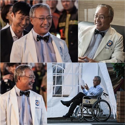 1일 '디데이' 제작진이 공개한 사진 속 이경영은 극 중 보여준 미래병원장 박건과는 상반된 모습이다.