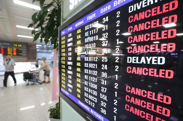 이날 오전 11시 5분께 타이베이서 출발해 김해공항에 도착할 예정이던 중화항공C1188편 항공기가 결항하는 등 이날 오전 10시부터 현재까지 모두 24편의 출·도착 항공기가 결항했다.