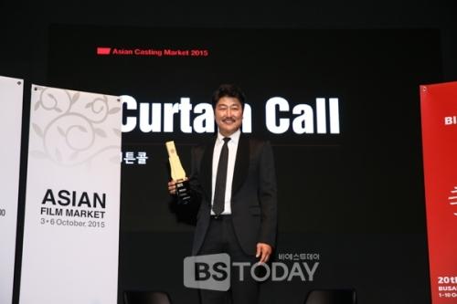 [부산=비에스투데이 김종진 인턴기자] 배우 송강호가 5일 오후 부산 해운대구 우동 벡스코 제 2전시장에서 열린 '2015 아시안 필름 마켓' 커튼콜 행사에 참석해 활짝 미소짓고 있다.