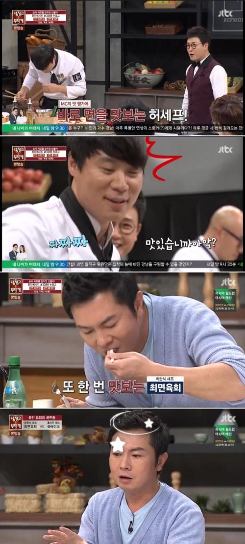 [비에스투데이 김정덕 객원기자] 5일 방송된 JTBC '냉장고를 부탁해'에서 임원희가 부탁한 '퓨전의 끝판왕' 요리 대결에 나선 최현석이 자신의 요리를 중간 점검하면서 짜다고 솔직하게 말해 웃음을 유발했다.