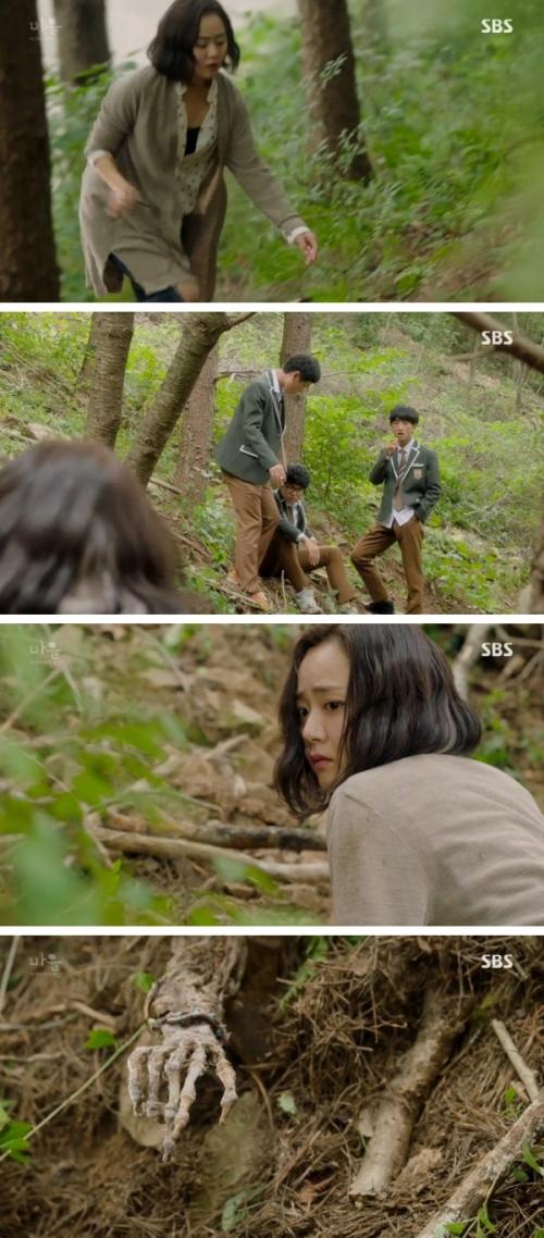 7일 방송된 '마을-아치아라의 비밀'에서 소윤이 백골이 된 시체를 발견하고 경악하는 모습이 그려졌다.