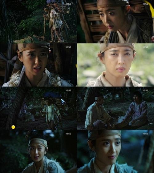 이날 방송에서는 '남장 여자'로 전국을 돌아다니는 젓갈장수 보부상 개똥이(김민정)가 반 시체상태로 버려졌던 길소개(유오성)를 살리는 모습이 담겼다. 젓갈동이를 등에 진 개똥이는 야산에 버려져 의식을 잃고, 누워있는 길소개의 손가락을 자르려는 거지 떼들을 도깨비불로 ?i아냈던 터. 거지들이 사라지고 나서 길소개를 살펴본 개똥이가 그냥 돌아서 가려고 하자 길소개는 개똥이의 발목을 잡았다.