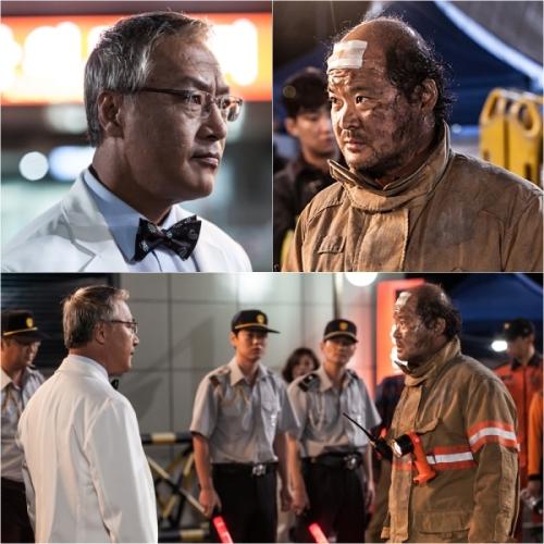 이경영은 뒷짐을 지고 매서운 눈빛을 뿜어내며 계산적인 병원장 박건으로 완벽히 변신했다. 김상호 역시 구조반장의 카리스마를 발산하며 연기내공을 발휘했다. 이에 긴장감 넘치는 대치장면이 완성돼 스태프들이 폭풍 감탄을 터트렸다는 후문.