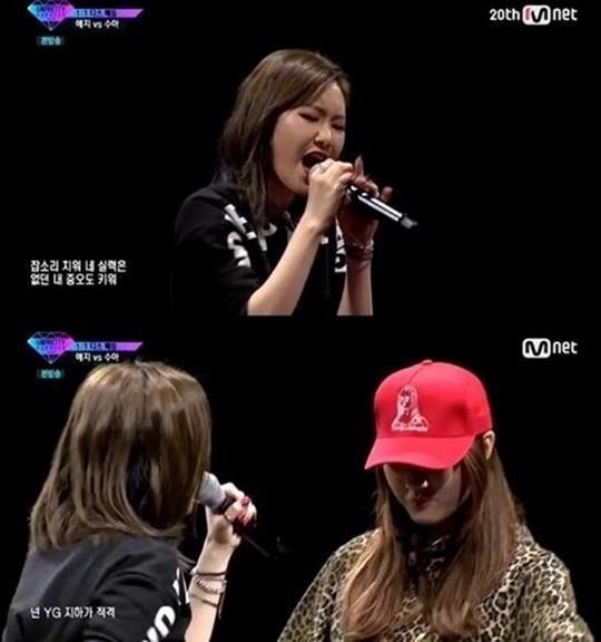 예지의 1대1 배틀 상대는 YG연습생 수아. 예지는 본격적인 배틀이 시작되자마자 도발적인 디스 랩으로 승기를 잡았다. 예지는 수아를 향해 "멍청이 아가야" "YG딱지를 떼고 나와라"라고 쏘아붙였다.