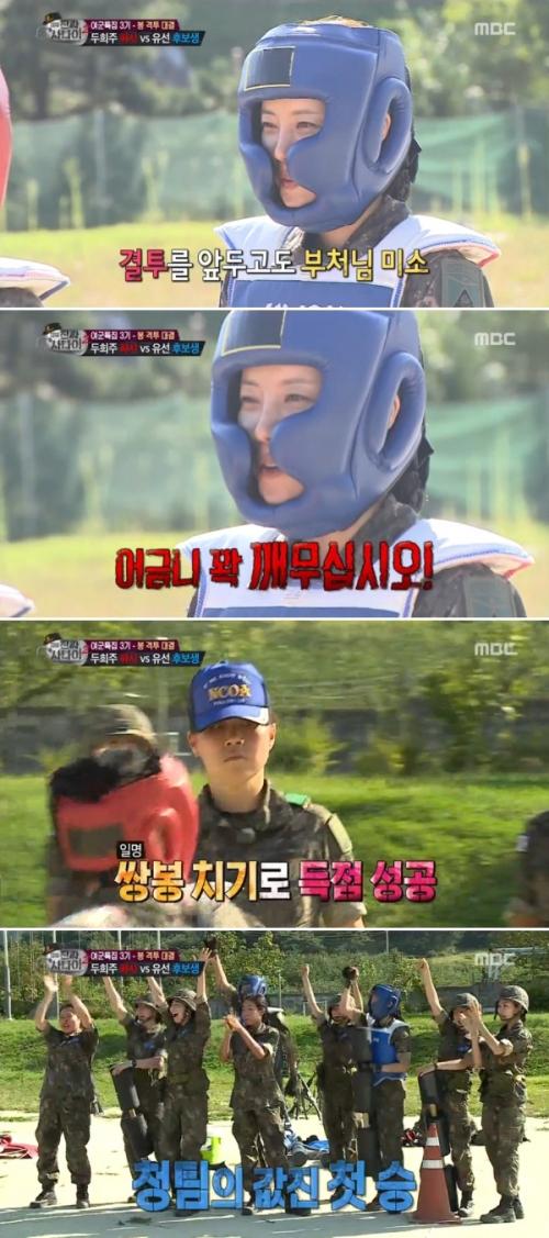 [비에스투데이 김상혁 기자] MBC '진짜사나이-여군특집3'에서 유선이 절권도 경험을 살려 봉격투 승리를 안았다.