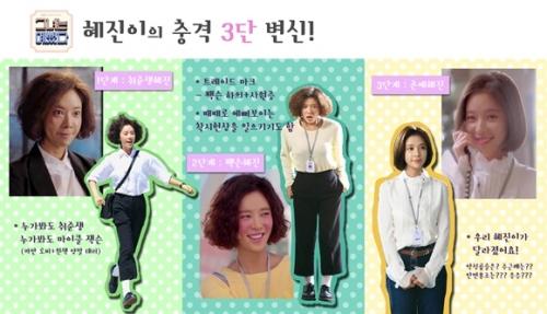 '취준생 혜진' 시절은 누가 봐도 취준생 임을 떠올릴 수 있을 정도의 무채색 '면접용 스타일'이어서 눈길을 끈다. 특히 부스스한 폭탄머리, 안면 홍조에 주근깨까지 누가 봐도 인정할 정도의 '1등 폭탄녀'의 위용을 자랑하며 강렬한 존재감을 드러냈다.
