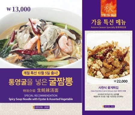 차이니즈 레스토랑 크리스탈제이드 가을 신메뉴 출시 '통영 굴짬뽕 눈길'