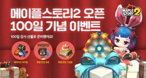 [비에스투데이 류세나 기자] 넥슨(대표 박지원)은 자사가 개발 및 서비스하고 있는 신작 온라인게임 '메이플스토리2'에서 서비스 100일 기념 이벤트를 진행한다고 15일 밝혔다.