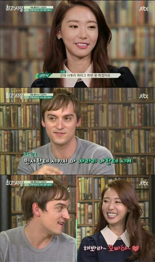 [비에스투데이 김상혁 기자] JTBC '님과 함께2'에서 배우 송민서가 사투리 애교로 남자친구 기욤 패트리를 쓰러뜨렸다.