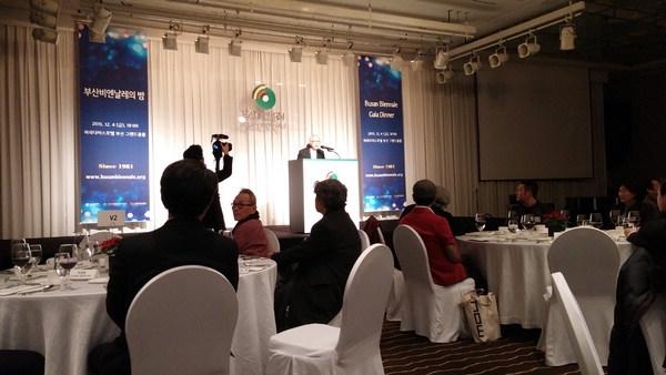 내년 10번째 행사를 여는 2016 부산국제비엔날레는 역대 최대 규모가 될 예정이다. 사진은 4일 저녁 해운대 파라다이스호텔에서 열린 '부산비엔날레의 밤' 행사.내년 10번째 행사를 앞둔 부산국제비엔날레가 공식적으로 시동을 걸었다.