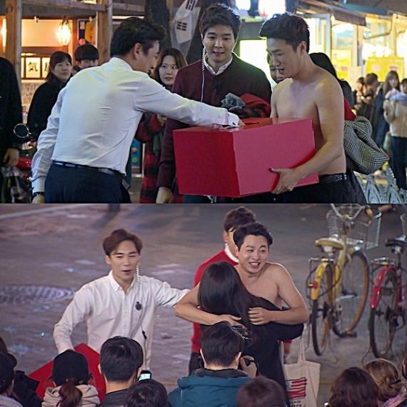 특히 각 팀의 주장을 맡은 유상무와 장동민은 후배들의 회식비를 위해 상의를 탈의해 눈길을 끈다. 후배들이 성금 모금을 하던 중 사람들이 생각보다 모이지 않자 살신성인으로 직접 밖으로 나간 것.