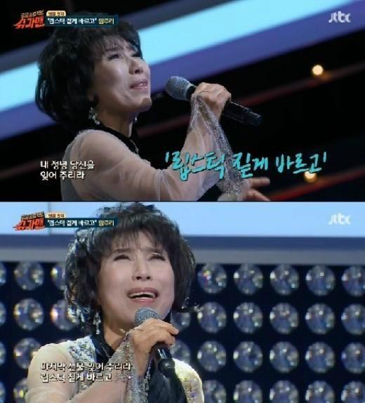 슈가맨 임주리 립스틱 짙게 바르고. 사진-JTBC '슈가맨' 방송 캡처슈가맨 임주리 립스틱 짙게 바르고