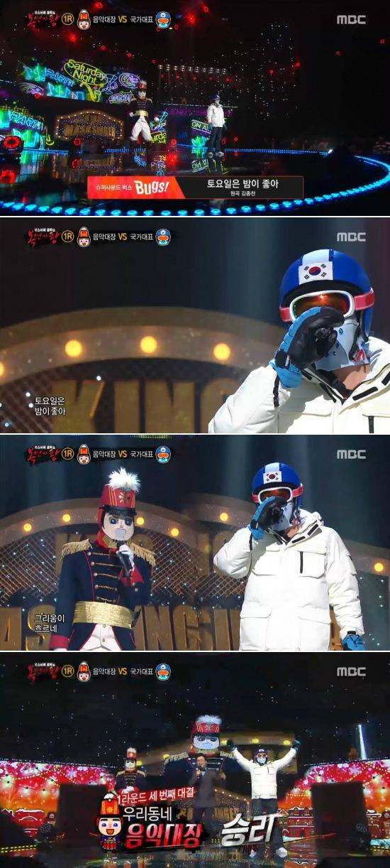 [비에스투데이 김두연 기자] MBC '일밤-복면가왕'의 음악대장이 국가대표를 꺾고 준결승에 진출했다.