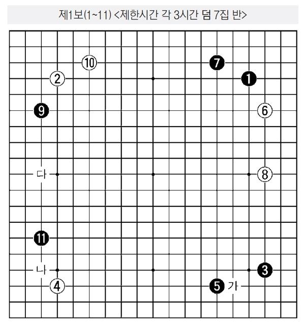 다시 돌을 가려 이세돌이 백이다. 일단 커제가 백을 들고 두고 싶어 하는 선수이므로 거꾸로 상대가 선호하는 쪽을 주지 않았다는 점은 분명 운이 좋다고 하겠다.