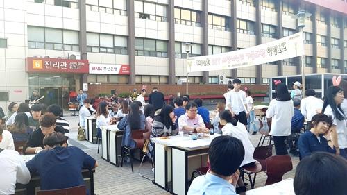 동의과학대학교(총장 김영도) 사회복지과(학과장 박용운)는 지난 2일 오후 5시 대학 늘벗터 광장에서 지역 사회의 불우 이웃을 돕기 위한 '사랑 나누미'일일호프를 진행했다.