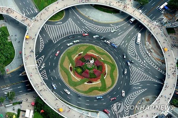 루자쭈이 보행교. 연합뉴스중국 상하이 푸둥의 금융 중심지인 루자쭈이(陸家嘴)에는 각 건물을 연결하는 원형 보행교(사진)가 있다. 높이 5.5~8m의 인도교 형태로 상하이세계금융센터(SWFC)를 비롯한 주변 건물을 연결하도록 설계해 보행 편의성을 높였다. 관광객들은 차들의 방해를 받지 않고 편리하게 이동할 수 있고, 교통 흐름 측면에서도 도움이 돼 일석이조의 효과를 거두고 있다는 평가가 나온다. 밤에는 야경도 아름다워 관광객들이 한 번쯤 들러볼 만한 관광 명소로 각광 받고 있다.