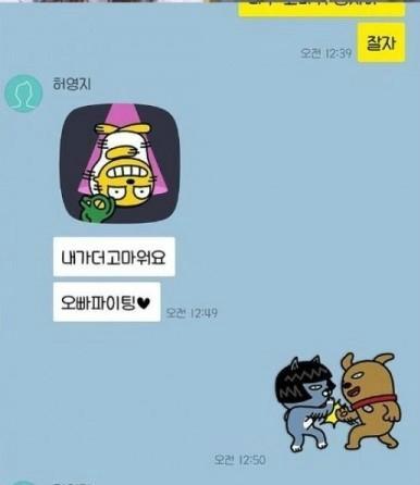 허영지는 "잘자"라는 허정민의 말에 "내가 더 고마워요 오빠 파이팅♥"이라고 말했고, 허정민은 이모티콘으로 답했다.