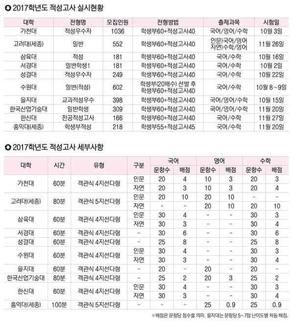[입시 '족집게'] 2017 적성고사전형 주요사항