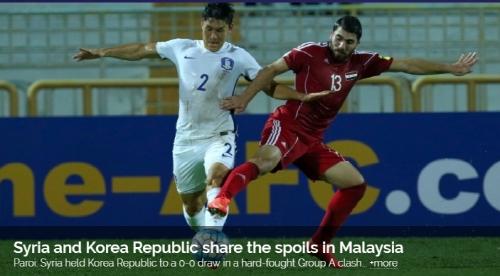 한국 축구국가대표팀이 시리아와 0-0 비기면서 2018 러시아 월드컵 아시아 최종예선 A조 3위로 내려앉았다. 우즈베키스탄은 A조 선두에 올랐다.