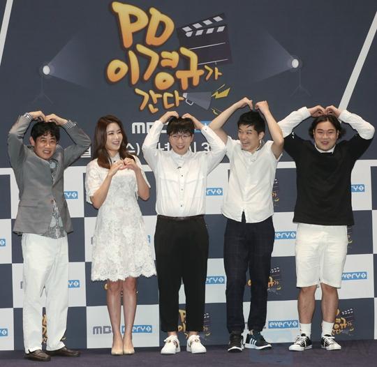 개그맨 이경규 김주희 한철우 정범균 유재환이 7일 오후 서울 영등포구 여의도CGV에서 열린 MBC에브리원 'PD이경규가 간다' 제작발표회에 참석해 포즈를 취하고 있다.
