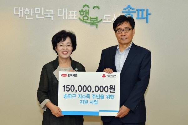 한미약품은 8일 저소득주민 지원사업을 위한 기부금 1억5천만원을 송파구청에 전달했다.