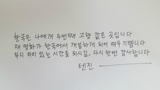 텐진 감독은 "재 영화가 한국에서 개봉하게 되어 매우 기쁩니다. 부디 의미 있는 시간을 되시길, 다시 한 번 감사합니다"라고 한글 손편지로 마음을 담았다. 서툴지만 진심이 느껴지는 짧은 한 마디다.