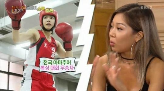 또 "타고난 힘이 좋다"며 "복싱도 한 달 정도 했는데 3개월 하면 이시영도 잡을 수 있다고 하더라"고 자신했다. 더 나아가 "여자는 무섭다고 생각해 본 적 없다"면서 "UFC도 희망한다"고 말했다.