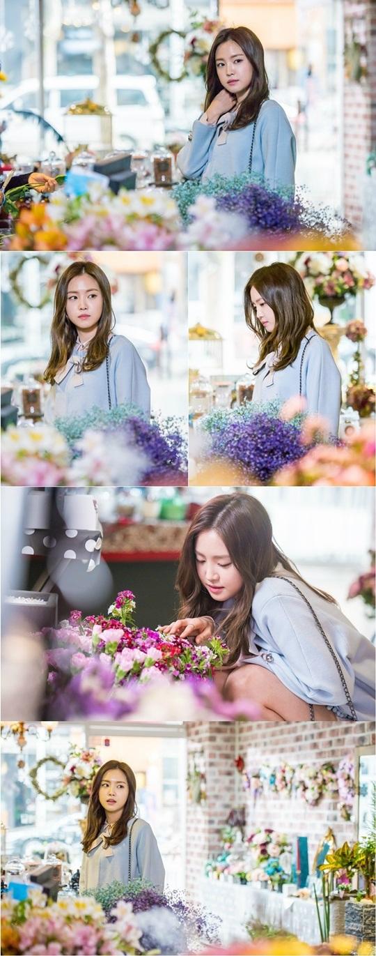 또 이어지는 스틸 속 혜지는 손끝으로 꽃잎을 어루만지는 모습으로 시선을 사로잡는다.