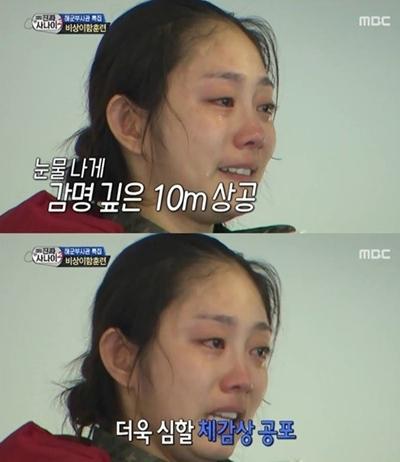 이날 훈련을 앞둔 서지수는 "물 공포증이 심하다. 물 안에서 숨을 못 쉬는 것 자체를 무서워한다"며 "밑에 블랙홀이 있는 느낌이었다. 수영도 못해서 소름이 확 돋으면서 무서웠다"고 눈물을 흘렸다.