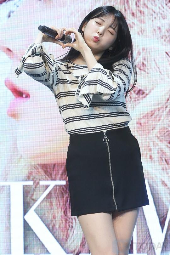 프로듀스101 출신 이수현이 12일 오전 서울 마포구 신한카드판스퀘어에서 열린 김주나 싱글 '썸머 드림'(Summer Dream) 발매 기념 쇼케이스에 참석해 포즈를 취하고 있다.