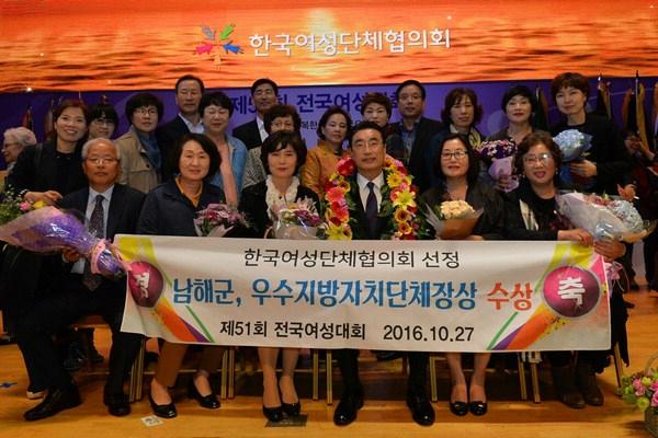 남해군수,전국여성대회에서 우수지방자치단체장상 받아