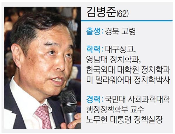2일 신임 국무총리 후보자로 내정된 김병준(62) 국민대 교수는 참여정부에서 청와대 정책실장을 지낸 '친노(친노무현)' 진영의 인사다.