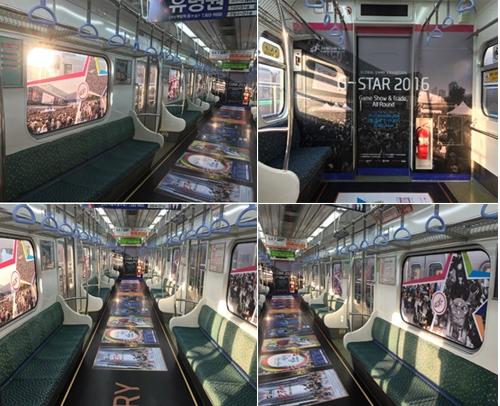 특히 테마열차 벽면에는 '지스타 2016 포토존'을 설치하여 승객들이 사진을 찍을 수 있도록 하였으며, 바닥에는 지스타의 역대 포스터를 한눈에 볼 수 있도록 구성했다. 이외에도 지스타에서 진행되는 게임전시, 비즈니스상담, e스포츠 행사 등을 안내한다.