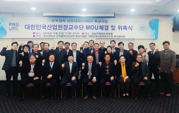 부산대 LINC사업단(단장 정해도·기계공학부 교수)은 최근 부산대 상남국제회관에서 대한민국 산업현장교수단 부산협의회(회장 강상우·창원문성대 산학협력단 교수)와 산학협력 지원사업에 관한 양해각서(MOU)를 체결했다(사진).
