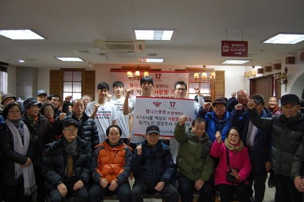 웰니스병원(대표원장 김병수)은 프로농구 KT소닉붐 박상오 선수와 함께 지난달 31일 독거노인 100명에게 영양제 주사를 놓아주는 '사랑애(愛) 자유투 기부행사'를 개최했다.
