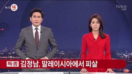 14일 방송된 TV조선 뉴스 판에서 김정은의 이복형 김정남의 피살 소식을 특종 보도했다.