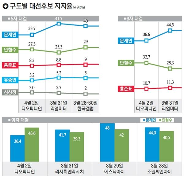 안 후보가 앞선 조사 결과도