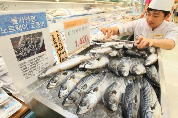 고등어 수요가 늘지 않아 국내 고등어 수입업체들이 일본이나 중국으로 역수출을 모색하고 있다. 사진은 대형 유통점에 진열된 노르웨이산 고등어. 연합뉴스'잘 나간다던 노르웨이 고등어가 일본, 중국으로 역수출? 그동안 무슨 일이?'