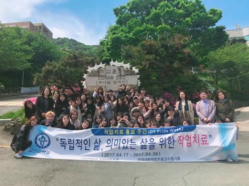 고신대학교 작업치료학과(학과장 조무신) 제2대 A/S작업치료학과 학생회(회장 정채연)는 너나들이 보조도구동아리(회장 여소정), 하나 린 봉사동아리(회장 조지연), 영도 어울림 복지관과 함께 2017년도 작업치료 홍보주간(OT Pride Week)을 맞아 지난 4월 17일부터 28일까지 2주간 작업치료 인식 제고와 예비 작업치료 학생들을 위하여 지역사회와 본교 학생들에게 작업치료를 알리는 행사를 진행했다.