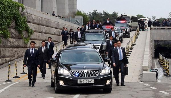 10일 문재인 대통령이 탑승한 차량이 청와대 경호팀의 경호를 받으며 국회를 나서고 있다. 연합뉴스한반도 주변 정세가 요동치는 가운데 취임한 문재인 대통령은 20여 년 넘게 우리를 위협하는 북한 핵 문제를 해결하고 동시에 꽉 막힌 남북관계를 개선하는 '두 마리 토끼'를 잡아야 할 처지에 놓였다.
