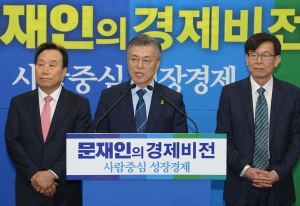 문재인 정부 출범으로 증세론 등 경제정책에 대한 관심이 모아지고 있다. 사진은 문 대통령이 대선후보 시절인 지난달 12일 서울 여의도 당사에서 경제공약을 발표하는 모습. 부산일보DB10일 문재인 정부가 출범한 것을 계기로 증세론, 일자리 창출 공약, 복지 공약, 탈원전 정책 등 주요 경제정책에 관심이 모아진다.