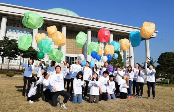 부산상공회의소가 문재인 정부 국정과제에 '2030등록엑스포 추진' 등을 포함할 것을 요구하고 나섰다. 사진은 지난해 부산엑스포 유치 기원 풍등 행사. 부산일보DB문재인 대통령의 지역 핵심 공약에서 제외된 '2030 등록엑스포 부산 유치'와 24시간 운항 공항에 대한 지역 사회의 요구가 더 거세질 전망이다.