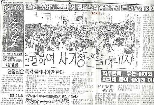 1987년 6월 부산 국본이 매일 만들어 배포한 투쟁 속보.