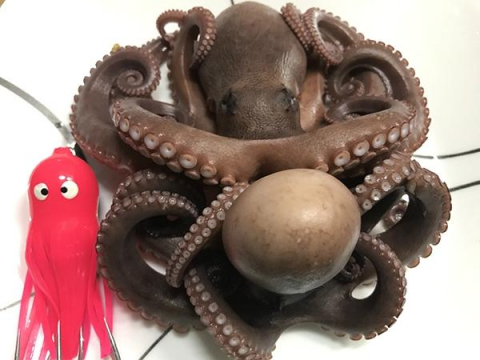 첫 문어를 낚은 뒤 멋진 사진을 찍고자 했다. 웬일인지 문어는 발을 활짝 펴 활개 치는 포즈를 취해 주지 않았다. 자꾸 몸을 움츠려 채비를 감싸기만 했다. 이렇게 비협조적인 것은 문어가 화가 났기 때문인가. 아니었다. 이유가 있었다.