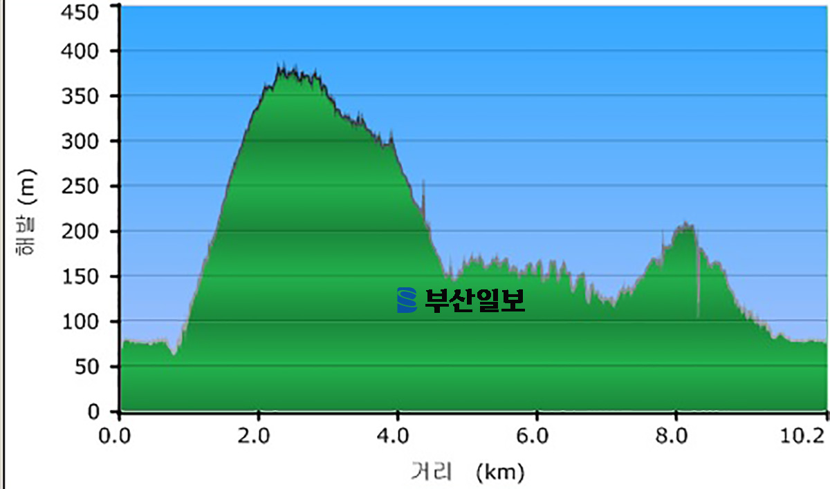 | ▲ 담양 오방길 2코스 고도표 (※ 사진을 클릭하면 더 크게 볼 수 있습니다.) |