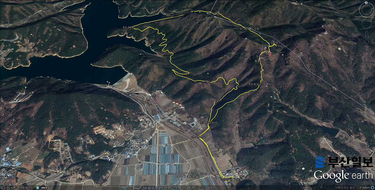 | ▲ 담양 오방길 2코스 구글어스 지도 (※ 사진을 클릭하면 더 크게 볼 수 있습니다.) |