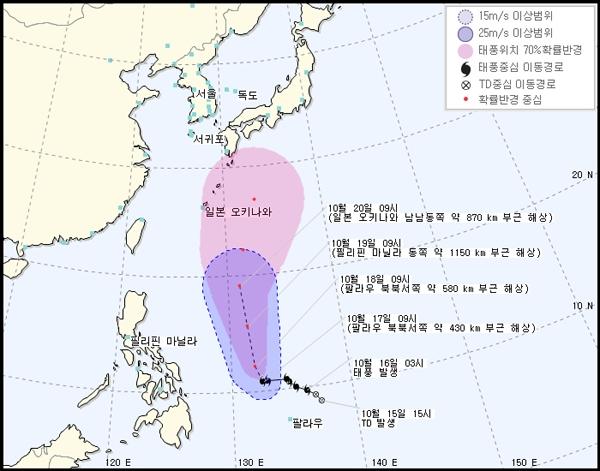 한편, 한반도에 미칠 영향은 태풍의 이동경로가 매우 유동적일 수 있어 이후 발표되는 기상정보에 유의할 필요가 있다.