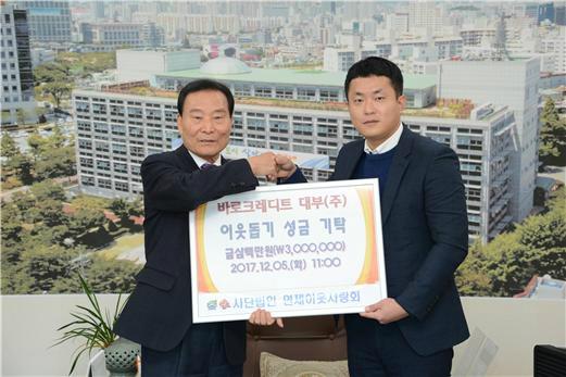 바로크레디트대부(주)(대표이사 김충호)는 지난 5일 어려운 이웃 지원을 위한 성금 300만 원을 (사)연제이웃사랑회에 기탁했다.바로크레디트대부(주)는 매년 꾸준하게 어려운 이웃들을 위해 성금을 기탁하고 있으며, 이번 성금은 복지사각지대 주민들을 위해 쓰일 예정이다.디지털본부 news@busan.com