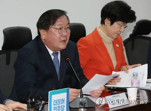 22일 오전 국회 의원회관에서 열린 '국민생명 지키지 3대 프로젝트' 당정협의에서 더불어민주당 김태년 정책위의장이 발언하고 있다. (사진=연합뉴스)